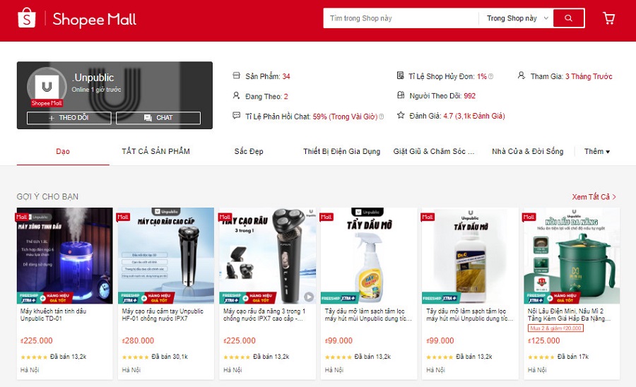 Đây là một shop uy tín cung cấp các loại máy móc phục vụ nhu cầu hằng ngày của con người như máy chà gót chân, máy uốn tóc, máy cạo râu cao cấp, máy tăm nước cầm tay, máy hút bụi,... Đặc biệt, sản phẩm máy xông tinh dầu tại shop luôn được nhiều người săn đón và đặt niềm tin mua ở nơi này. Khi mua máy xông tinh dầu tại Unpublic bạn sẽ được một không gian với mùi tinh dầu thiên nhiên tràn ngập trong căn phòng của bạn. Máy xông tinh dầu có hiệu quả sử dụng lâu dài từ 5 đến 6 tiếng buổi tối, bạn không cần phải mất công châm dầu thường xuyên.