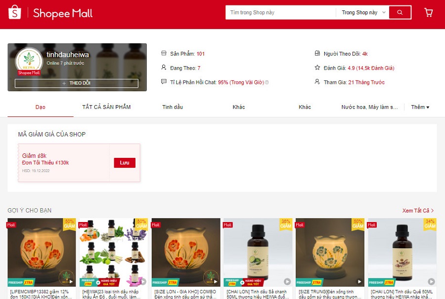 Gợi ý 7 shop bán máy xông tinh dầu chất lượng trên Shopee Mall
