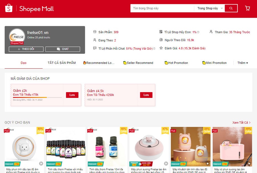 Fnelse01.vn phải nói là một shop chất lượng trên Shopee Mall được khách hàng tin tưởng. Các loại máy xông tinh dầu nơi đây đa dạng mẫu mã như có cả thiết kế cute dễ thương, sang trọng đẹp đẽ,... Máy xông tinh dầu của shop sẽ giúp bạn thư giãn sau một ngày dài làm việc mệt mỏi, thân thiện với môi trường, giúp bạn tập trung hơn trong công việc, học tập hiệu quả.
