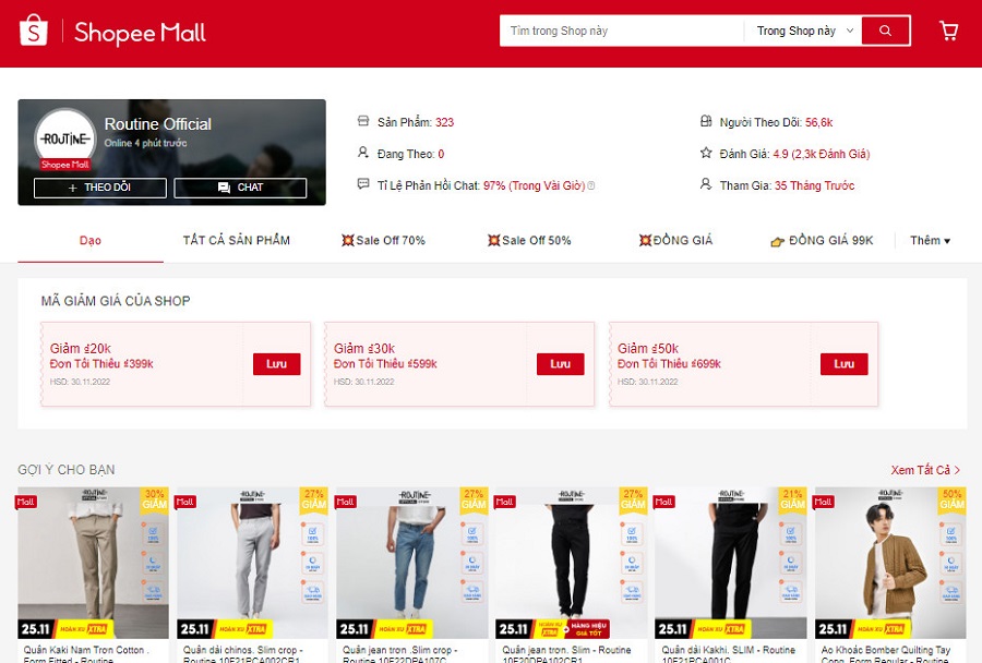 2. Routine Official: Gian hàng thời trang nam uy tín trên trên Shopee