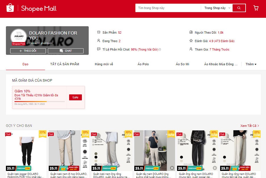 Dolaro là nơi cung cấp các mặt hàng quần áo uy tín trên Shopee Mall. Dolaro có các loại quần, áo, vớ,... tất cả đều là hàng chính hãng, được kiểm tra kỹ càng trước khi mang đến tay người đung. Quần kaki nam của Dolaro được thiết kế theo dáng baggy, chất liệu kaki cao cấp không xù lông, không nhăn, màu đen, xám và be đều tôn dáng, quần kaki luôn giúp người mặc toát lên phong thái lịch thiệp, trưởng thành.