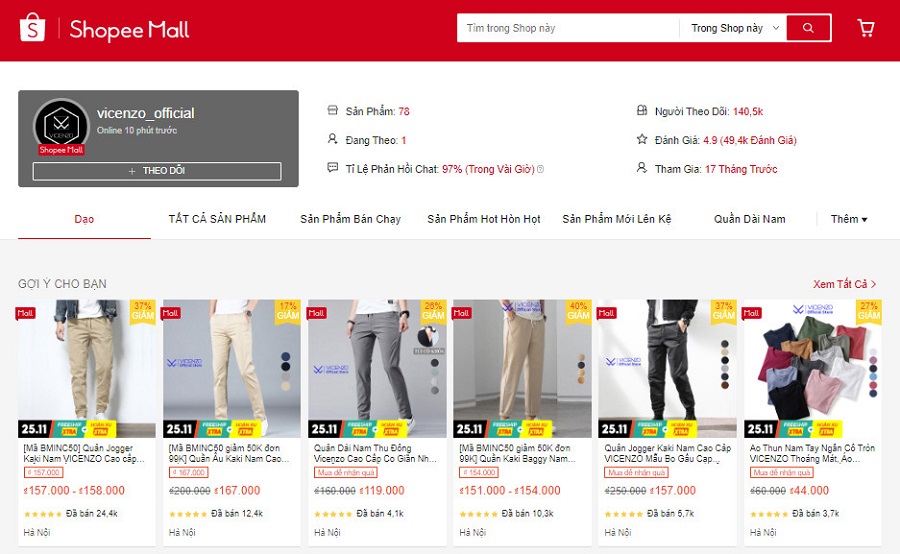 6. Vicenzo_official: Địa điểm bán đồ nam đẹp, giá tốt trên Shopee