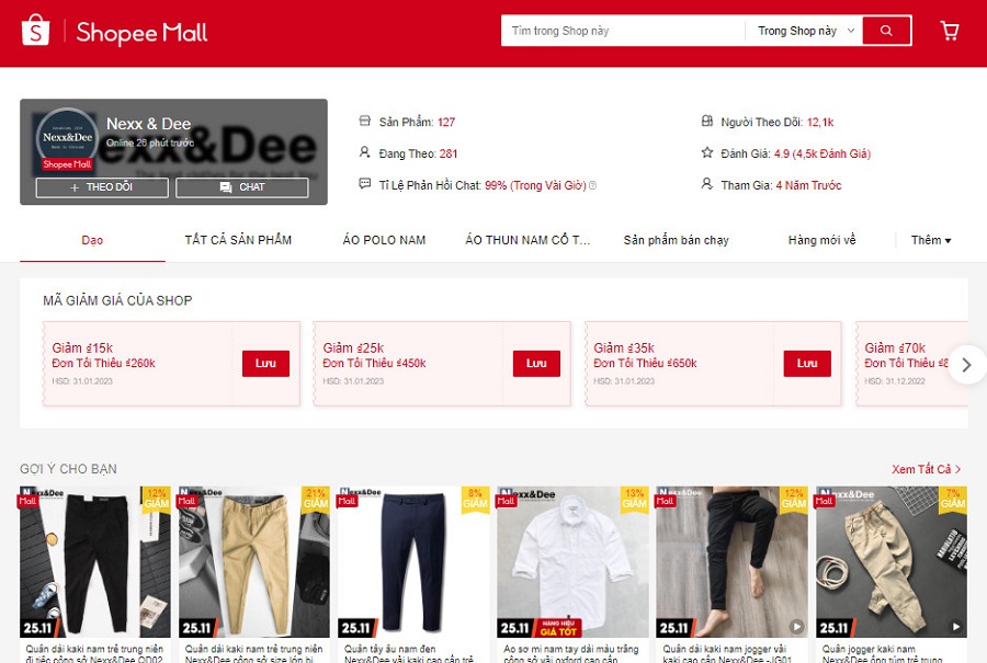 7. Nexx&Dee: Shop kinh doanh thời trang nam nổi tiếng trên Shopee