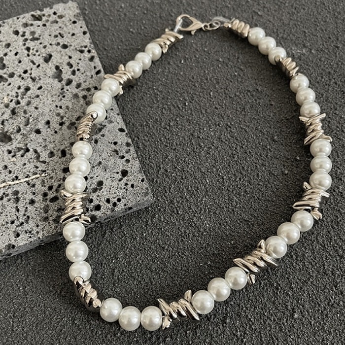 Thiết kế của mẫu vòng cổ này mang phong cách đường phố nên item này phù hợp với những bạn nào có gu thời trang cá tính bụi bặm cực chất. Với chất liệu ngọc trai nhân tạo xen kẽ với những cục thép được làm tỉ mỉ và sáng bóng đã tạo nên một chiếc vòng cổ mang thiên hướng Unisex cực ngầu, cực cool. Nếu bạn là một người đam mê sự phá cách và nổi bật thì không thể bỏ qua em này được.