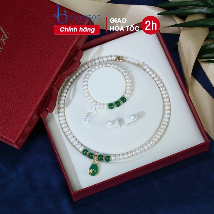 Thiết kế này là sự kết hợp từ ngọc trai tự nhiên nước ngọt cùng với bạc S925 tinh khiết tạo nên một bộ trang sức vô cùng hoàn hảo, đẹp mắt. Bộ trang sức này giúp phái nữ tăng thêm sự hấp dẫn, đồng thời cũng giúp bản thân có được một khí chất vương giả đặc biệt. Nếu bạn có ý định tặng một ai đó món quà thật ý nghĩa thì đây là gợi ý tuyệt vời bạn có thể tham khảo.