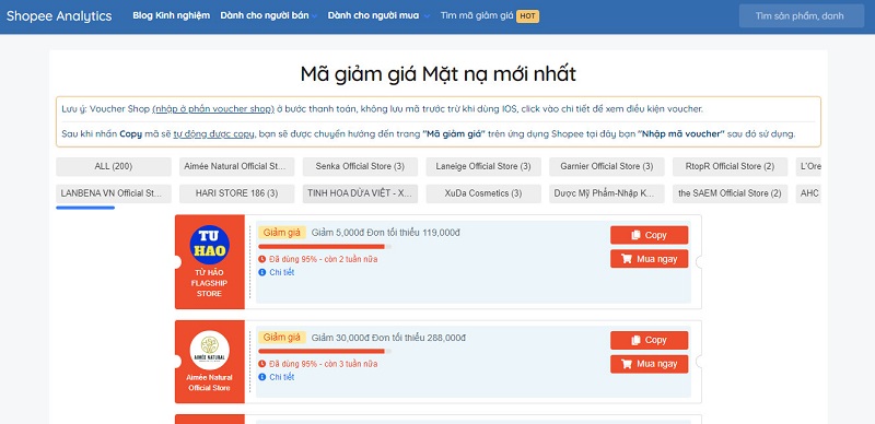 Bạn truy cập vào đường link sau https://www.shopeeanalytics.com/vn/ma-giam-gia.html