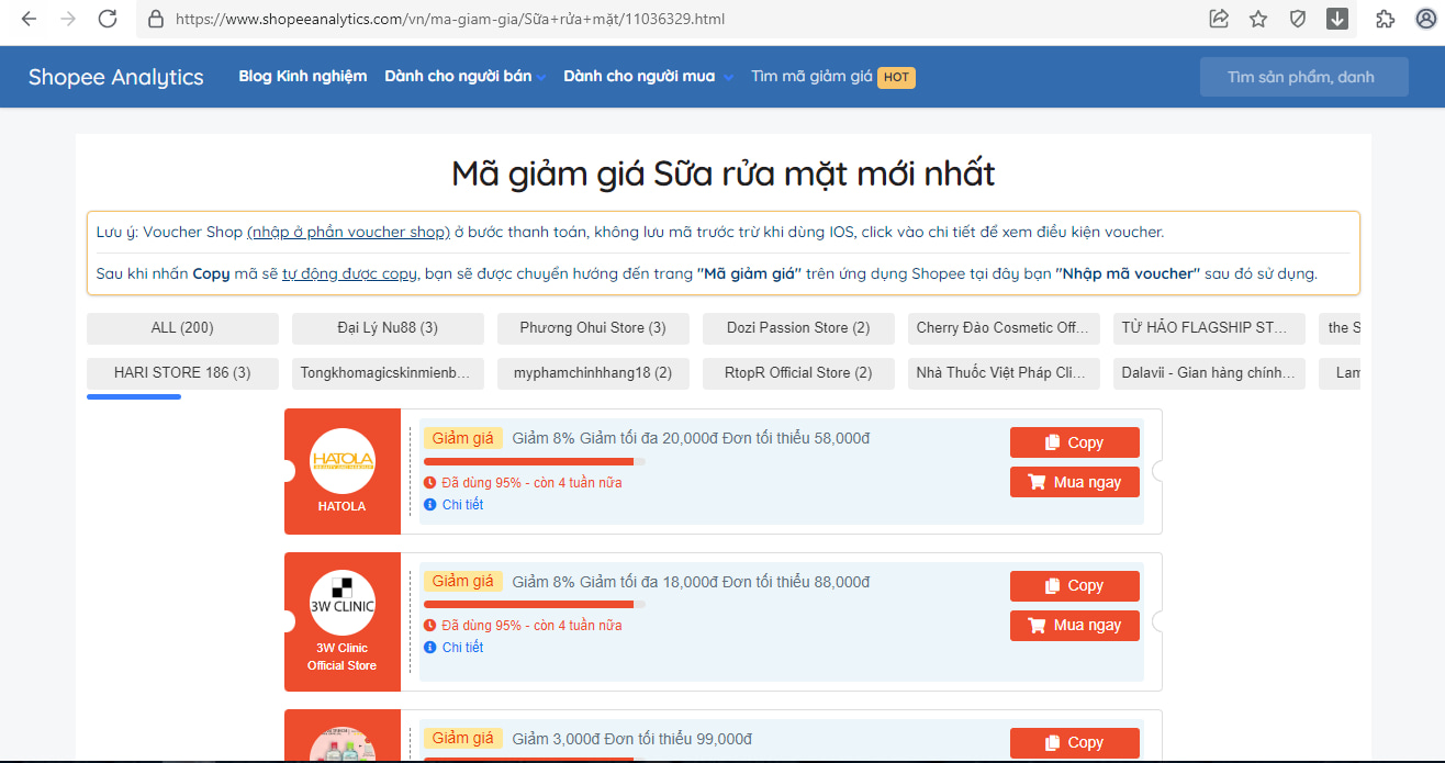 Trên đây là tổng hợp các mã giảm giá HOT, áp dụng khi mua sữa rửa mặt trên Shopee. Các bạn hãy tranh thủ lưu mã về và sử dụng để mua hàng, như vậy vừa tiết kiệm và vẫn mua được sản phẩm chất lượng như ý muốn.