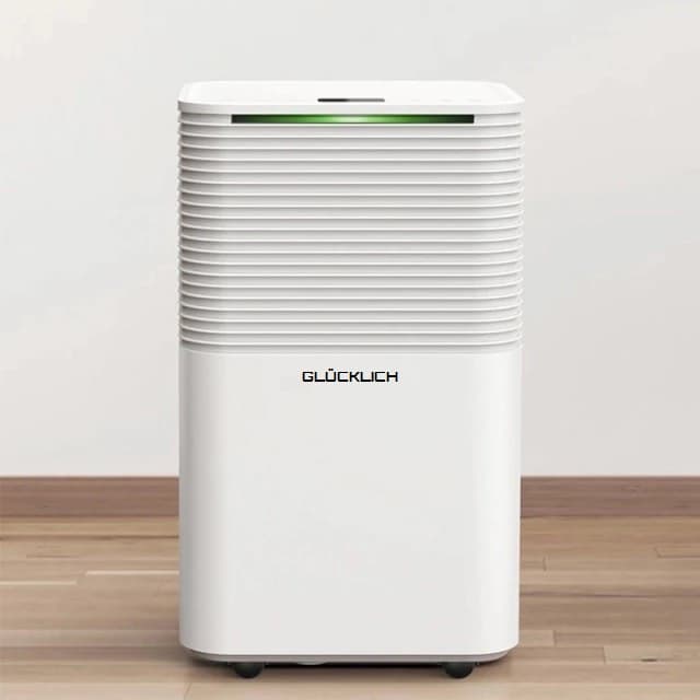 Máy hút ẩm GLUCKLICH có xuất xứ từ Trung Quốc, khả năng hút ẩm đỉnh cao lên đến 20L/ngày. Máy có nhiều ưu điểm và tính năng hiện tại như: công suất lớn, sử dụng trong phòng rộng tới 50m2, hệ máy nén cao cấp bền bỉ, có tuổi thọ trên 10 năm, chức năng vừa hút ẩm vừa lọc không khí, loại bỏ vi khuẩn.