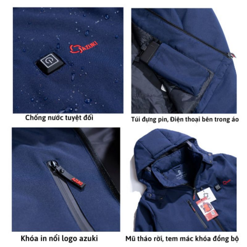Áo sử dụng nguồn điện từ sạc dự phòng nên bạn không cần phải lo điện giật, nguồn điện dễ sạc và thay đổi nhanh chóng. Với các điểm tỏa nhiệt được thế kế có cơ sở khoa học thời gian làm nóng nhanh chỉ từ 1-3 phút mang lại hiệu quả ngay khi sử dụng. Chất liệu áo siêu nhẹ, có thể giặt như bình thường, không giặt máy và không là. Thiết kế truyền thống nên nam và nữ đều có thể mặc được.