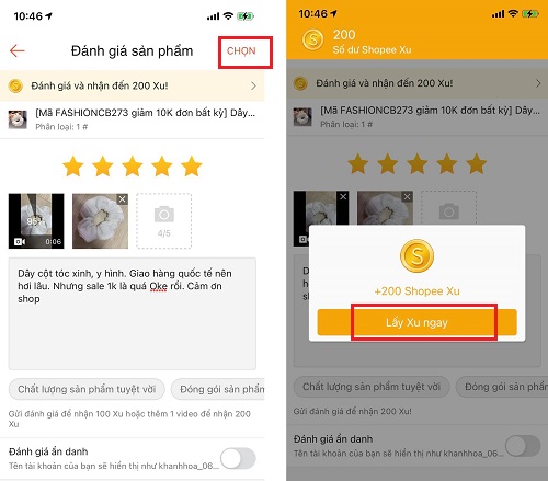 6. Đánh giá sản phẩm khi mua hàng thành công để nhận xu Shopee