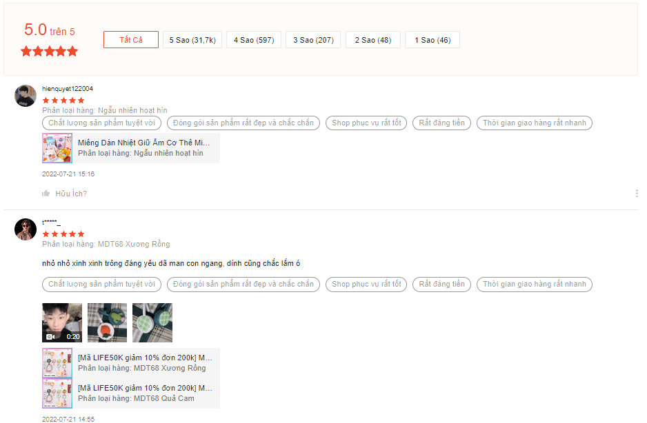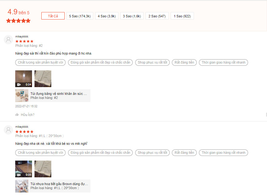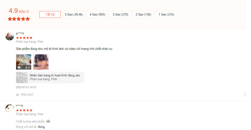 Đánh giá thực tế từ khách hàng của shop đạt 4.9/5* (trên 41k đánh giá), có hơn 90% là 5*, bạn có thể yên tâm khi mua hàng ở đây.