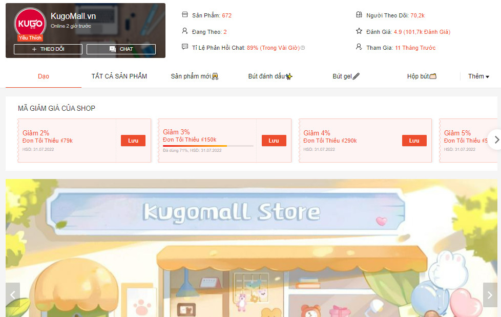 Yêu thích các sản phẩm cute thì nhất định bạn không thể bỏ qua KugoMall tại Shopee. Đây là một shop bán đồ dùng học tập quốc tế mới thành lập chưa đầy 1 năm nhưng điểm cộng nằm ở số lượng sản phẩm đa dạng và mẫu mã cực đáng yêu. Chả vậy mà chỉ trong một thời gian ngắn gian hàng này đã ghi nhận tới hàng trăm nghìn lượt bán cùng số điểm đánh giá 4.9/5*.