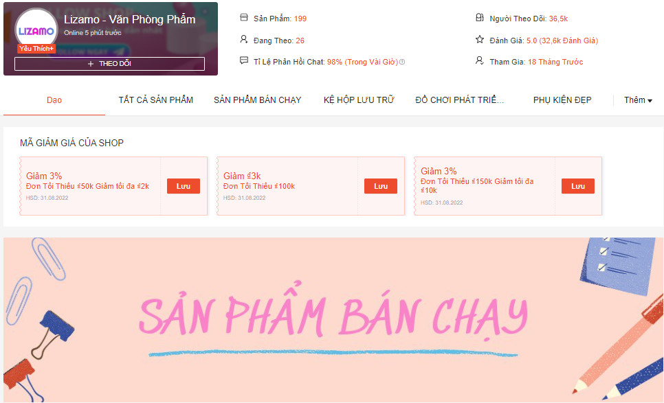 Lizamo là shop bán đồ dùng học tập giá rẻ tại Shopee có địa chỉ kho tại Hà Nội. Đến đây bạn có thể tìm thấy không chỉ các dụng cụ quen thuộc như bút, sổ tay mà còn có cả các loại kệ đựng đồ và nhiều phụ kiện hay ho khác với giá cả chỉ chưa đến 50k. Nếu bạn đang tìm kiếm các thiết bị trang trí cho góc học tập thì đừng quên ghé đây để tham khảo nhiều mẫu hơn nhé.