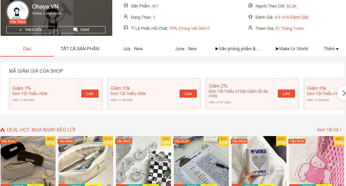 Ohaya là một shop bán đồ dùng học tập trên Shopee khá nổi tiếng với kho tổng đặt tại Trung Quốc và ship trực tiếp đây về Việt Nam. Shop này có ưu điểm là sản phẩm khá đa dạng (hơn 400 sản phẩm khác nhau), trong đó toàn bộ mã đều được sản xuất tại Trung Quốc nên giá thành cực kỳ “hạt rẻ”. Đồ dùng tại Ohaya không chỉ rẻ mà còn xinh, với các phối màu cute từ sổ tay tới phụ kiện, bút viết đảm bảo không đụng hàng khi mua.