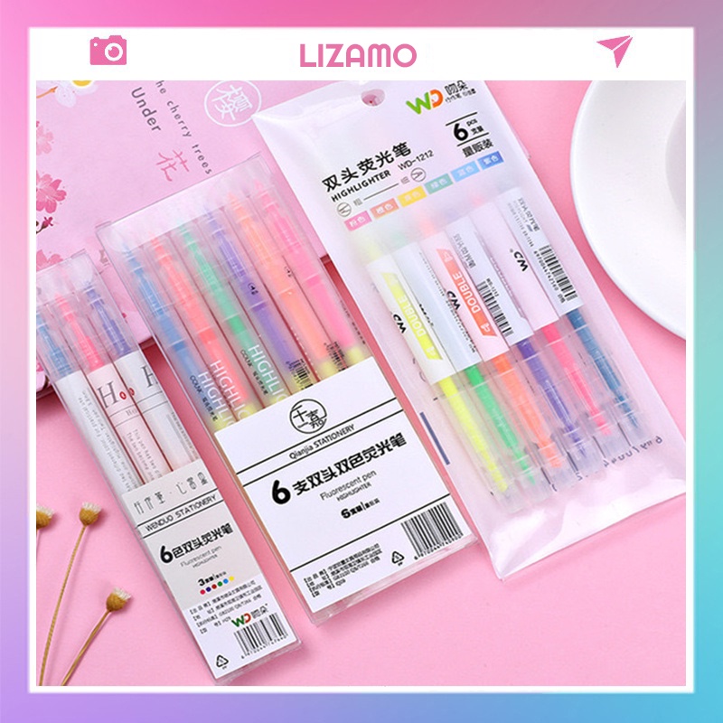 - Set 6 bút highlight Pastel hai đầu đánh dấu nhớ dòng tiện lợi