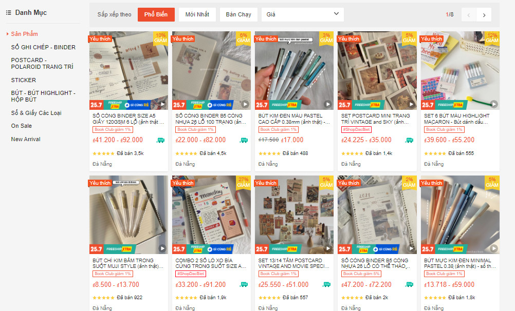 Văn phòng phẩm sổ tay giá rẻ nhận được lượt đánh giá 5/5* tại Shopee tính trên hơn 16k lượt đánh giá - con số khá ổn cho 1 gian hàng online.