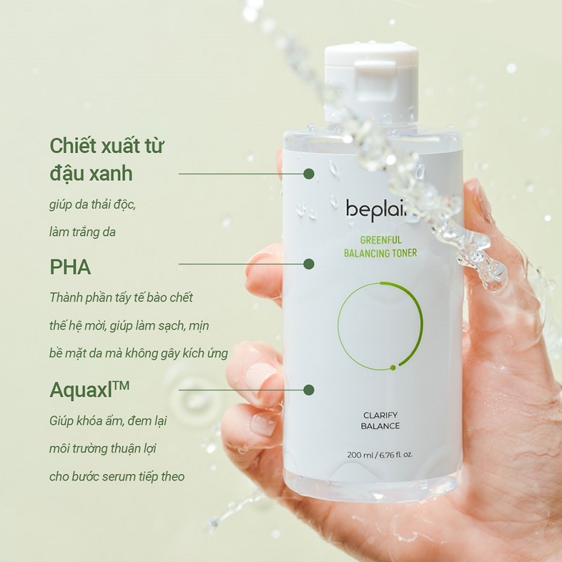 Bảng thành phần của toner Beplain có 42,6% chiết xuất từ hạt đậu xanh và aquaxyl. Sản phẩm có chưa PHA với kết cấu nhẹ nhàng, sử dụng được cho mọi loại ra. Toner có tác dụng dưỡng ẩm, làm dịu và tẩy tế bào chết, kiểm soát dầu thừa trên mặt bạn.