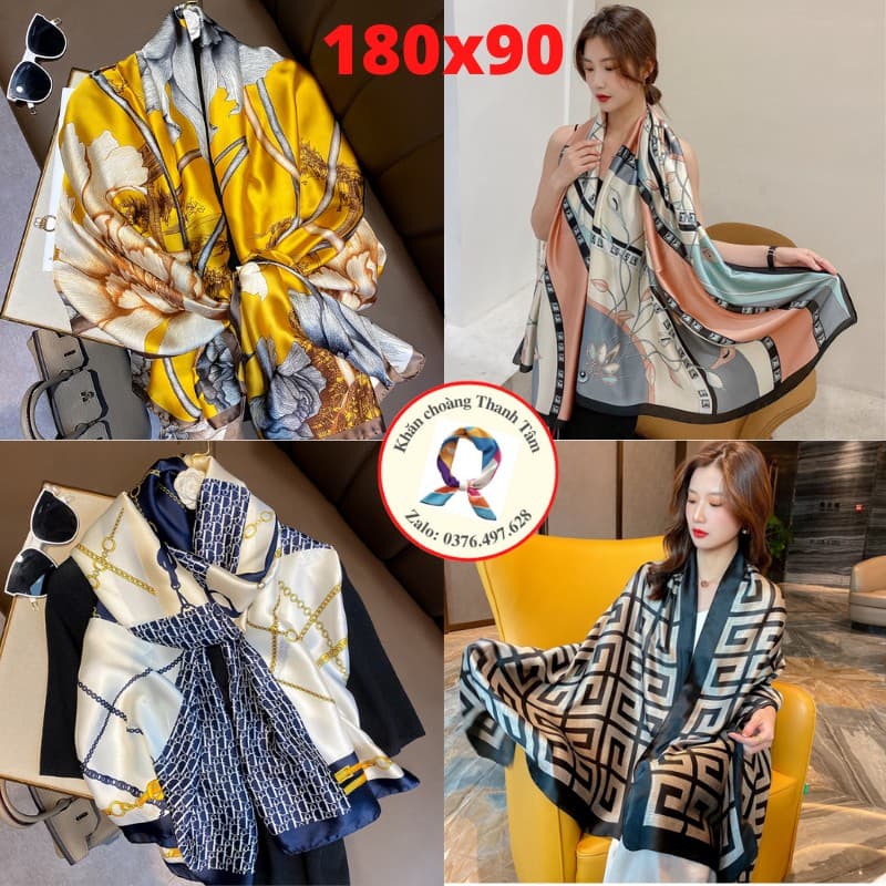 Kích thước khăn 180x90 cm ( có sai số +,- 2cm). Phong cách này tạo nên sự thanh lịch nhẹ nhàng và quyến rũ. Các nàng có thể phối với đầm, váy, đồ công sở, dự tiệc hoặc đi du lịch thoải mái.