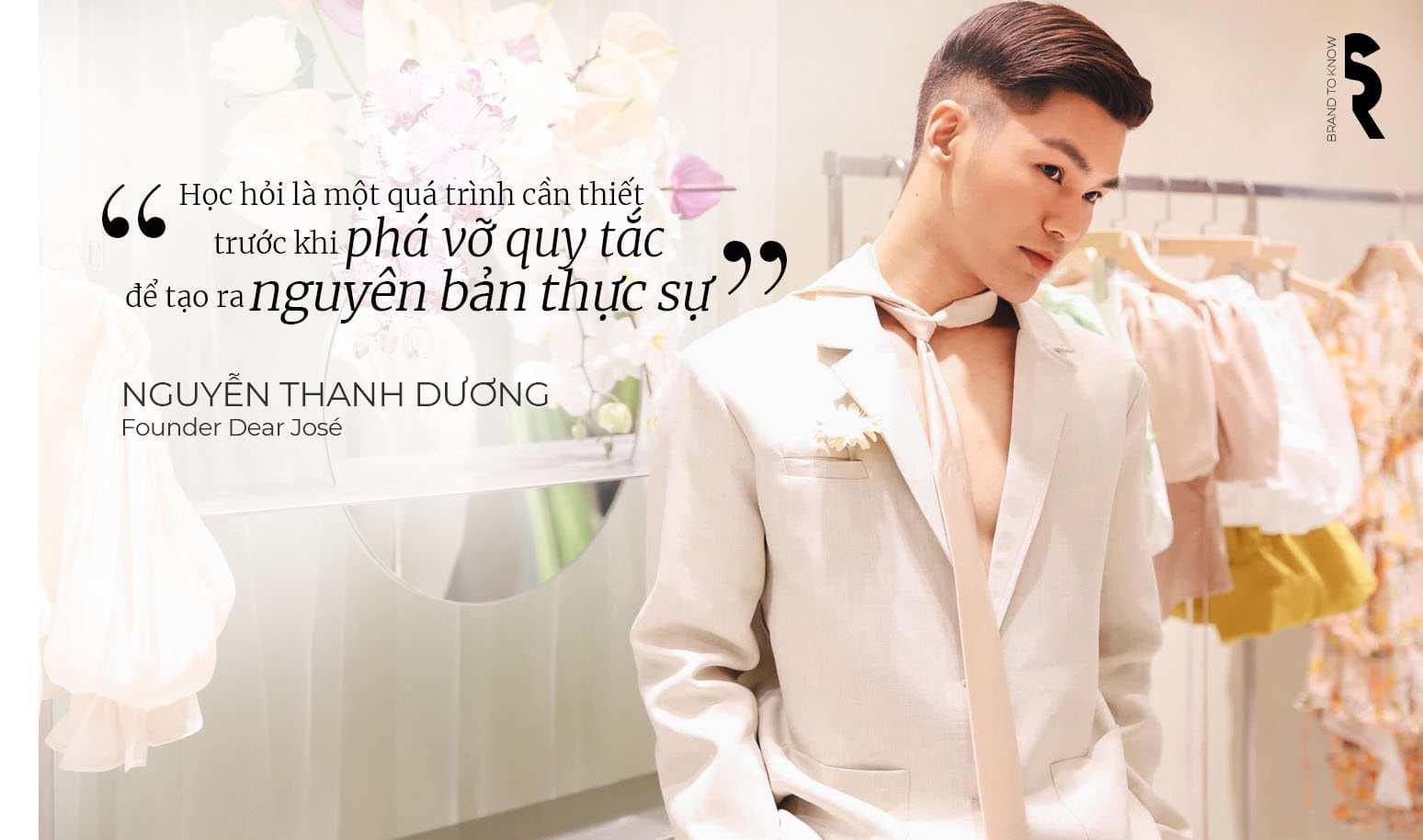 Thương hiệu thời trang DEAR JOSÉ có xuất xứ từ Việt Nam, hãng được thành lập vào năm 2018 bởi nhà thiết kế Nguyễn Thanh Dương. Chàng trai này bắt đầu khởi nghiệp khi còn là sinh viên năm cuối ngành thiết kế công nghiệp. Đặc biệt, Dương còn là thực tập sinh của một số tạp chí thời trang lớn trong nước.