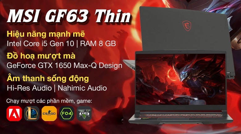 3. Laptop MSI Gaming GF63 THIN 10SC-014VN