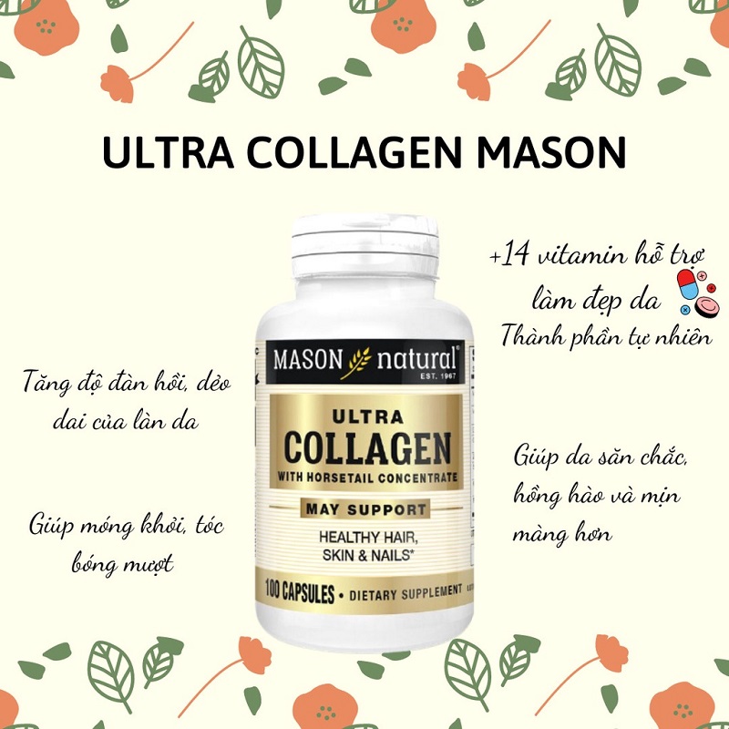 Sản phẩm có nguồn gốc xuất xứ tại thương hiệu nổi tiếng Mason Natural Ultra Collagen của Mỹ. Sản phẩm chứa các thành phần dưỡng chất vô cùng tốt: vitamin E, vitamin C, men vi sinh, canxi, Collagen, selen, kẽm, enzyme và rất nhiều những dưỡng chất khác nữa. Nhằm giúp tăng cường và kích thích hệ miễn dịch làm cho cơ thể hoạt bát, nhanh nhẹn hơn.