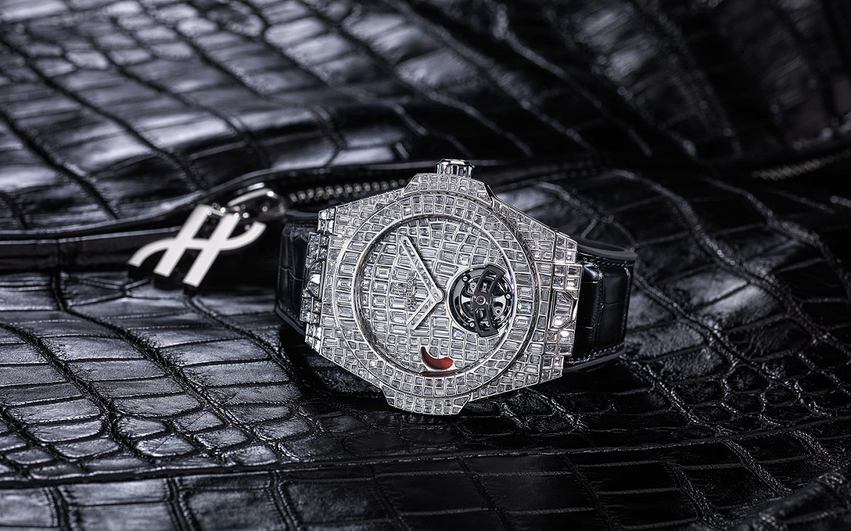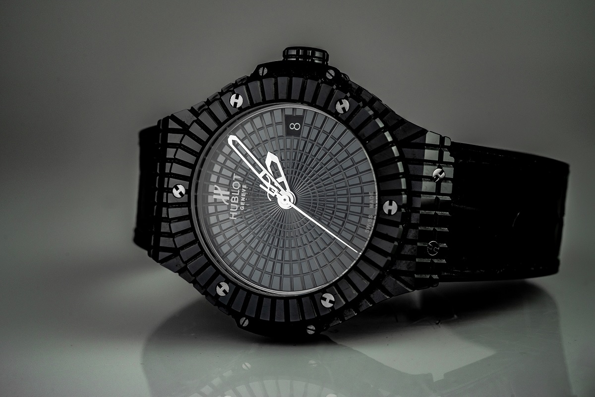 Giành được sự chú ý trong giới mộ điệu về việc áp dụng những kỹ thuật tân tiến cùng chất liệu cao cấp từ vàng trắng 18k (kim đồng hồ), chiếc đồng hồ Hublot Black Caviar Bang được trang bị cơ chế Tourbillon phô bày ở vị trí 6h. Mẫu đồng hồ xa xỉ này được đính 544 viên kim cương đen (trong đó tổng cộng là 34.5 carats) ở bề mặt, vỏ, khóa và núm. Đây cũng là mẫu đồng hồ rất được giới nghệ sĩ ưa chuộng bởi sự tráng lệ của nó.
