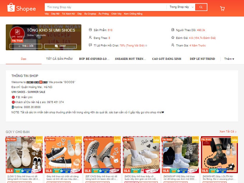 Đúng nghĩa với từ “tổng kho”, shop có đa dạng các mẫu giày dép xinh xắn giá cả giao động từ 25K - 150K, quá rẻ cho một sự lựa chọn phải không nào. Nói không sai khi nói mua sắm tại Tổng kho sỉ Umi Shoes là thiên đường mua sắm của tất cả các cô nàng sành điệu bởi ở đây có sneaker, cao gót, giày búp bê, sandal, sục nữ tính…