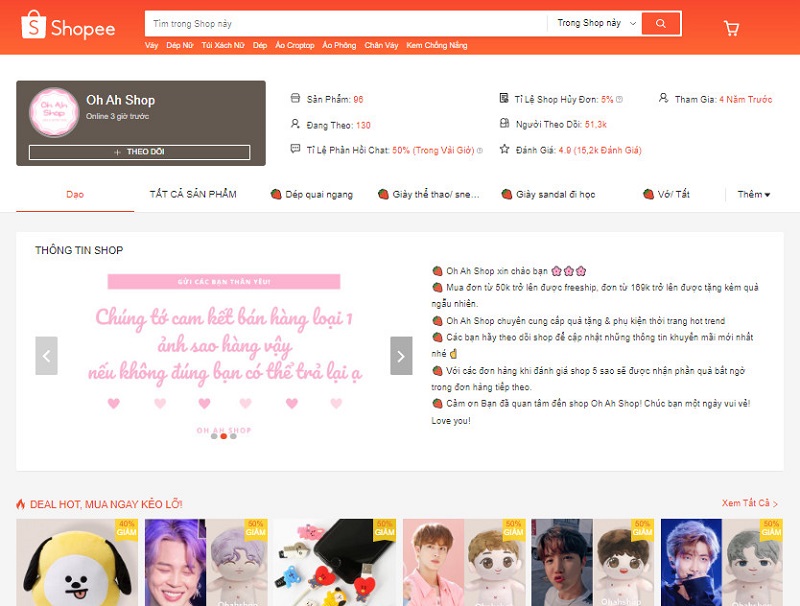 Oh Ah Shop là nơi mà có tất tần tật mọi sản phẩm từ 3K - 80K - 180K. Cảnh báo mua sắm quá đà nha, vì ở đây có siêu nhiều sản phẩm cho bạn lựa chọn: Tất, thiệp mừng sinh nhật đáng yêu, quà tặng, giấy gói, sổ giấy các loại, túi đựng tiện ích, giày/sneaker..quá ư là mê luôn.