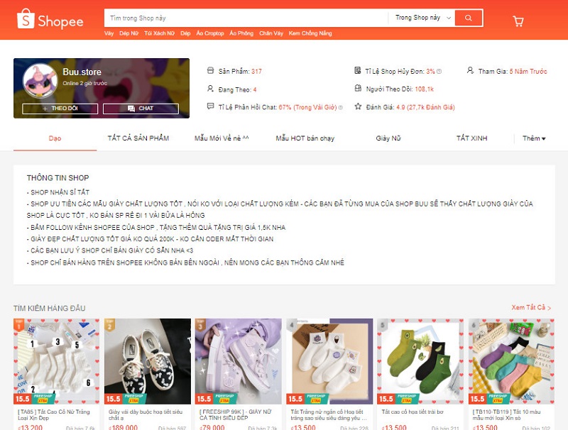 Giày chất lượng tốt, nhiều mẫu mã mà giá lại không quá 200K, từ lâu Buu.store đã trở thành nơi mua sắm yêu thích của các bạn trẻ. Ở shop có cả giày cho nam và nữ nha, tại shop các bạn sắm tất, giày, phụ kiện, gương, lược…Nếu bạn muốn mua sỉ thì Buu.store có nhận sỉ mặt hàng tất nha.