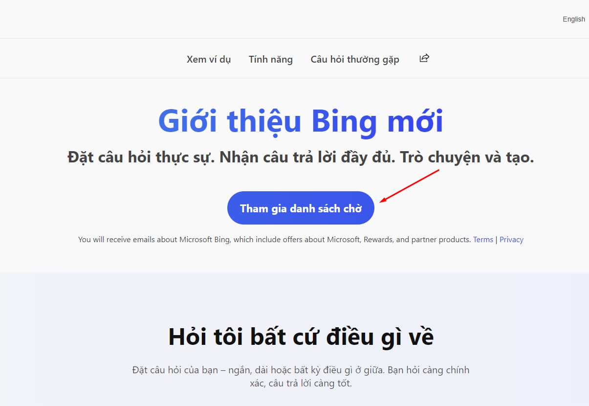 Bước 4: Click vào Bing new và nhấn “Tham gia gia danh sách chờ”.