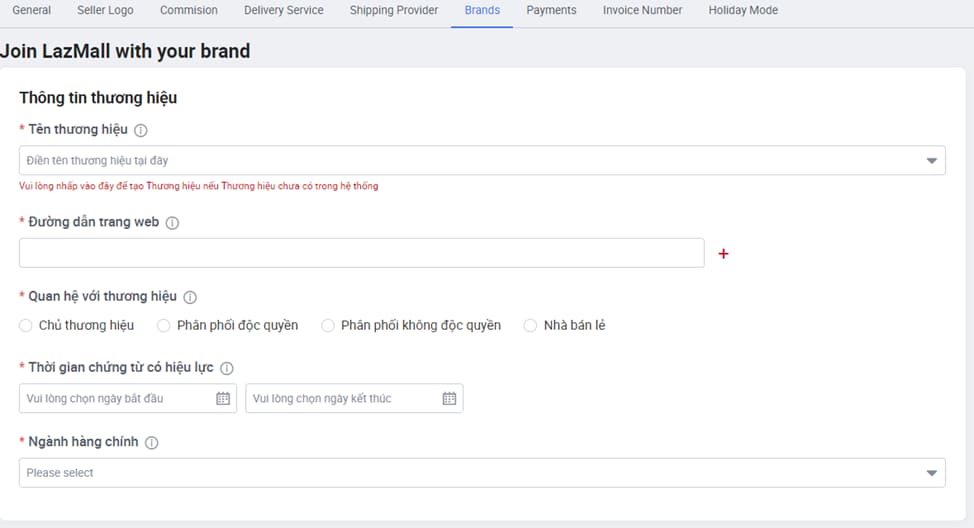 Đối với nhà bán hàng mới: Nhà bán hàng phải là chủ sở hữu thương hiệu hoặc nhà phân phối được chủ thương hiệu ủy quyền.