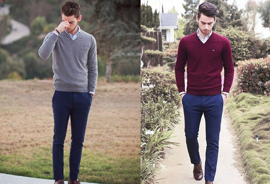 Tiếp theo đây là một set đồ quốc dân, không bạn nam nào có thể từ chối khi đi du lịch Đà Lạt vào mùa thu đông. Một chiếc áo len tay dài nhẹ nhàng đi cùng với quần tây hoặc quần jean sẽ mang đến cho bạn một nét đẹp trưởng thành, đầy lãng tử mà không kém phần trẻ trung. Hơn nữa, set đồ này giúp bạn giữ ấm cơ thể trong không khí se lạnh ở Đà Lạt.