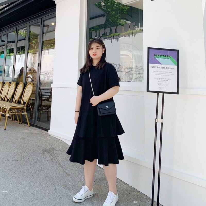 Để body trong thon gọn hơn, các nàng nên ưu tiên lựa chọn trang phục tối màu nhé. Và việc lựa chọn một chiếc đầm suông màu đen, váy yếm hai dây màu đen hay đầm đuôi cá màu đen chính là một trong những gợi ý hàng đầu của các “Tiktoker triệu view” đấy các bạn. Để trang phục thu hút và bắt mắt hơn, các nàng có thể kết hợp với áo khoác Denim để che đi khuyết điểm ở bắp tay. Đồng thời mix thêm một đôi Sneaker màu trắng hoặc đen tùy ý để tạo điểm nhấn nhé.