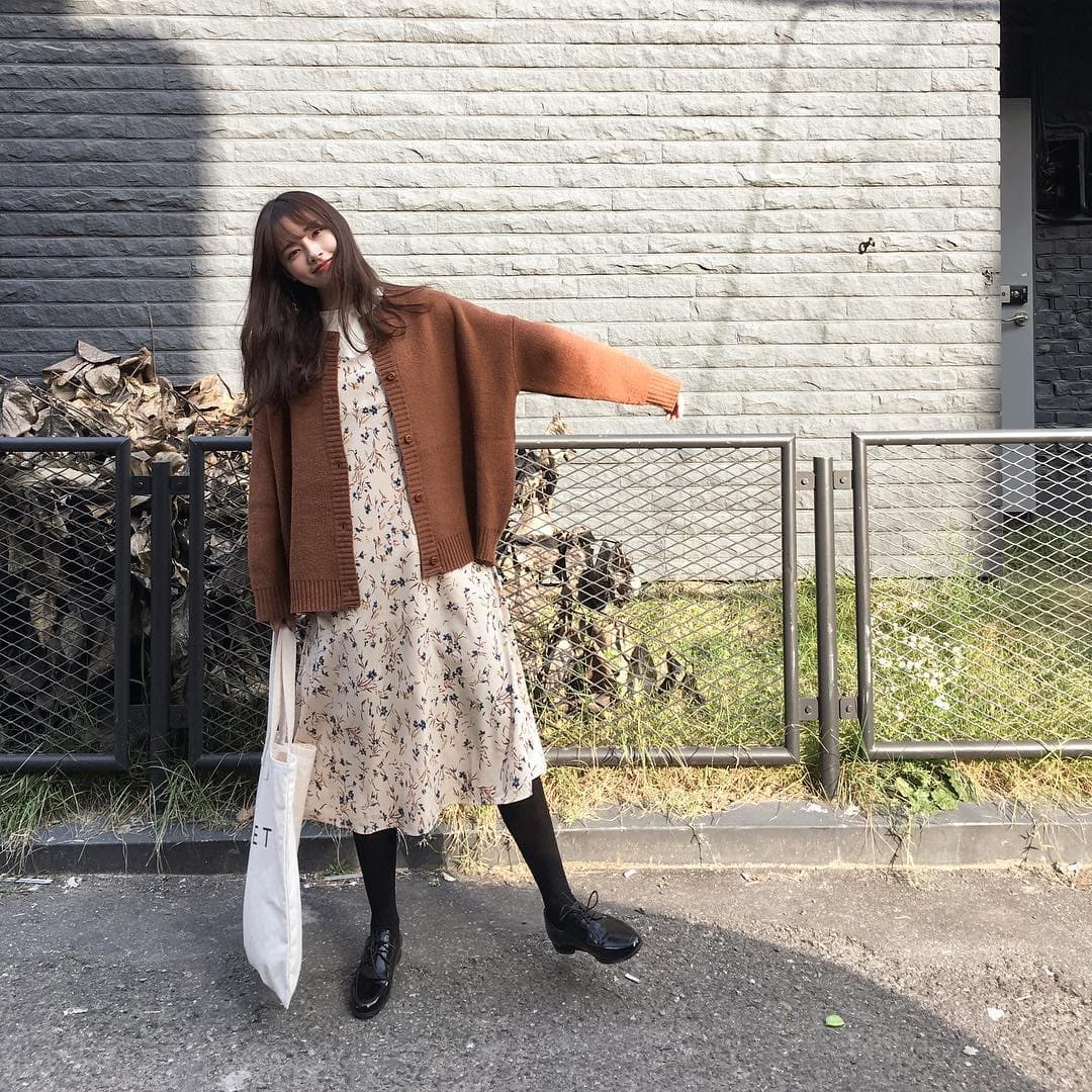 5. Váy hoa mix giày cao gót và áo khoác cardigan giúp cho “nàng mụp” hóa thành “nàng ther”