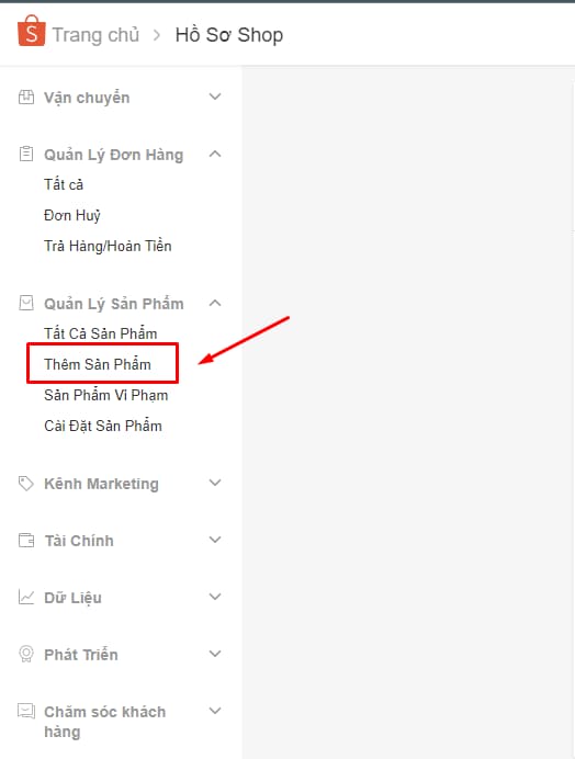 - Chọn “Quản lý sản phẩm” => Thêm sản phẩm mới