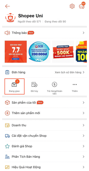 - Bước 1: Ở phần Đơn hàng, bạn chọn Đang giao