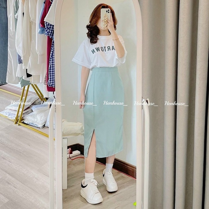 Set gồm chân váy xẻ tà và áo vô cùng thanh lịch và tôn da được chị em săn đón nhất từ mùa hè sang mùa thu hiện nay. Với sự kết hợp giữa màu trắng và xanh mint không bị gò bó mà mang lại cảm giác rất phóng khoáng và dịu dàng. Không những diện được đi làm mà còn phối được cả đi chơi lẫn hẹn hò khiến ai cũng phải ngước nhìn.