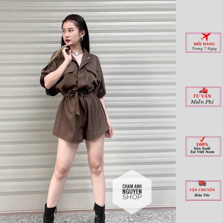 3.Set đồ nữ ngắn tay jumpsuit rút eo ulzzang cao cấp màu nâu đen