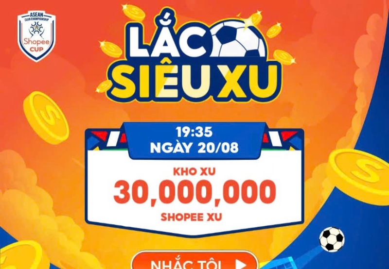 - Có những sự kiện livestream đặc biệt như đúng “lịch thi đấu Shopee Cup 2025/2026”, Shopee có thể kết hợp chương trình “Lắc Siêu Xu - Kho Xu 30 triệu” kèm theo livestream Shopee Cup. Bạn nên bật thông báo hoặc nhấn “Nhắc tôi” để không bỏ lỡ.