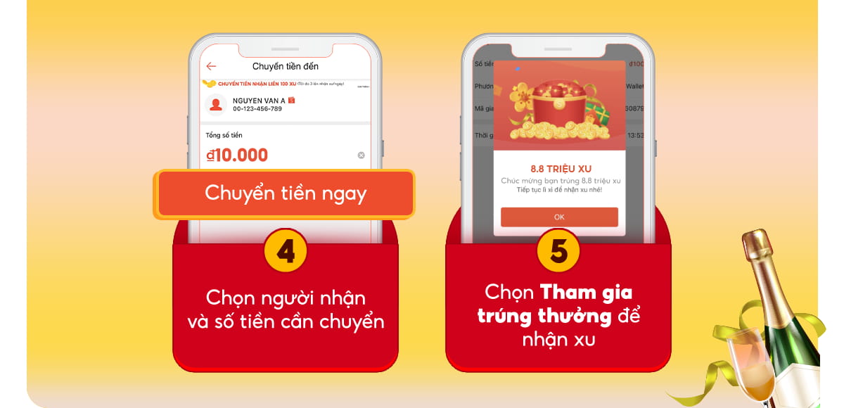 Bước 4: Chọn người nhận và số tiền cần chuyển (tối thiểu 10.000đ) > chuyển tiền