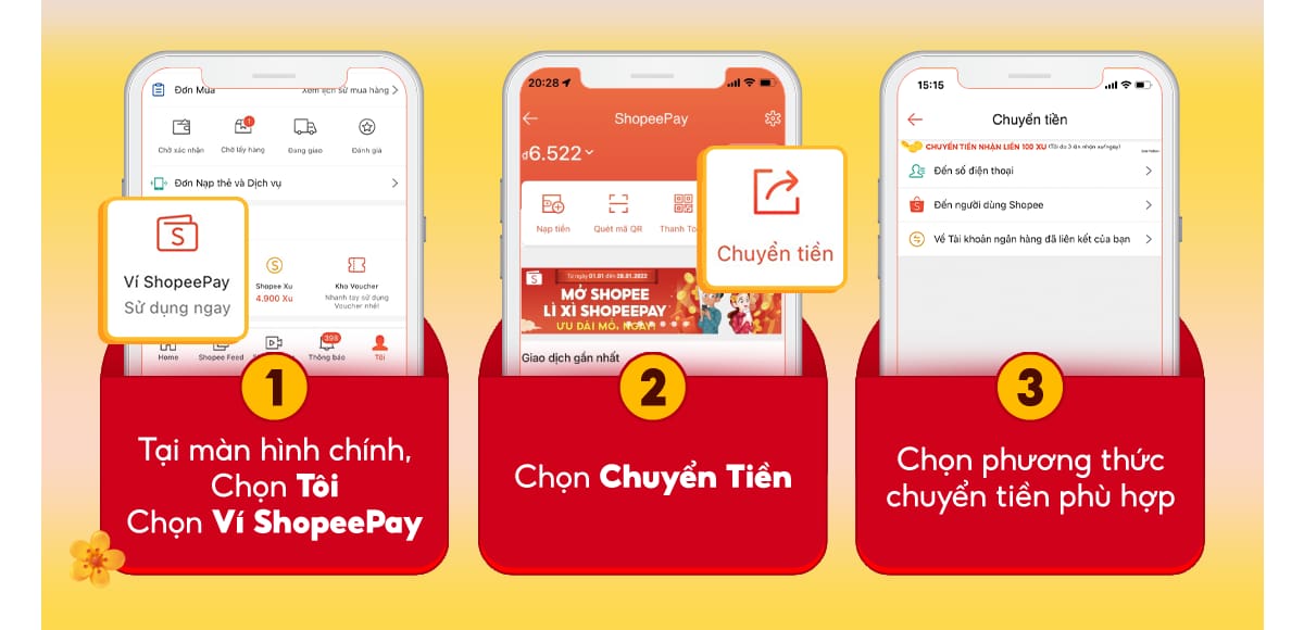 Như đã nói từ ngày 28.03 đến ngày 06.04 khi khách hàng thực hiện thao tác chuyển tiền thông qua ví Shopee Pay trên shopee, thông qua hai hình thức: Chuyển tiền qua ví shopee hoặc qua số điện thoại đăng kí Shopee Pay của người nhận.