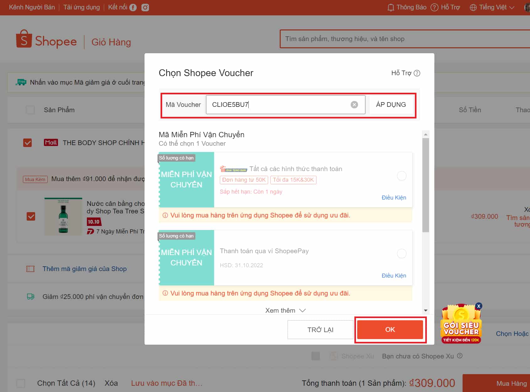 - Bước 3: Dán mã giảm giá vừa copy ở bước 2 và thanh toán đơn hàng mỹ phẩm trên Shopee là hoàn thành.