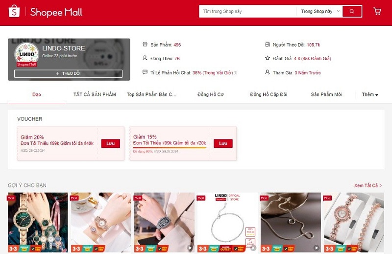 LINDO-STORE là một trong những cửa hàng đồng hồ phổ biến trên Shopee với nhiều mẫu mã đa dạng và phong phú. Với cam kết về chất lượng sản phẩm và dịch vụ chăm sóc khách hàng tốt, LINDO-STORE đã thu hút được sự quan tâm và tin tưởng của đông đảo người mua trên nền tảng này. Bạn có thể tìm thấy những mẫu đồng hồ thời trang, đẹp mắt và đa dạng về kiểu dáng cũng như màu sắc tại cửa hàng này.