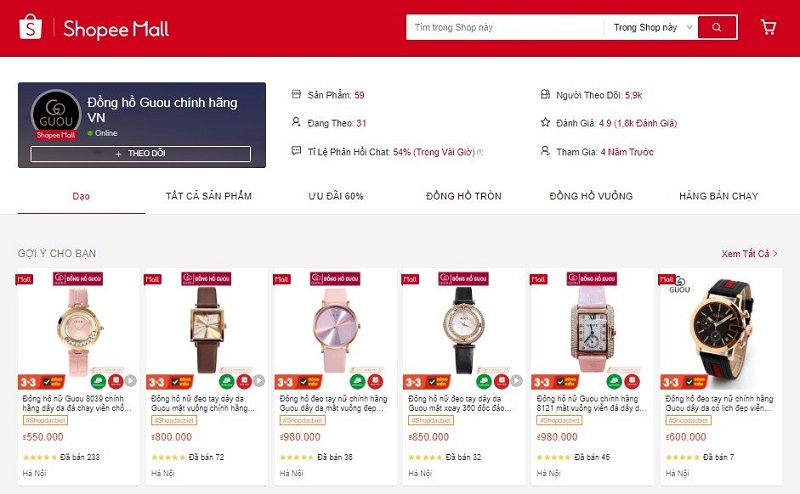 Guou là một địa chỉ uy tín khác trên Shopee, nổi tiếng với việc cung cấp các sản phẩm đồng hồ chính hãng từ các thương hiệu nổi tiếng. Với cam kết về sản phẩm chính hãng và giá cả cạnh tranh, Guou đã được nhiều người mua tin tưởng và lựa chọn. Tại đây, bạn có thể dễ dàng tìm thấy những mẫu đồng hồ cao cấp và đẳng cấp từ các thương hiệu nổi tiếng trên thế giới.