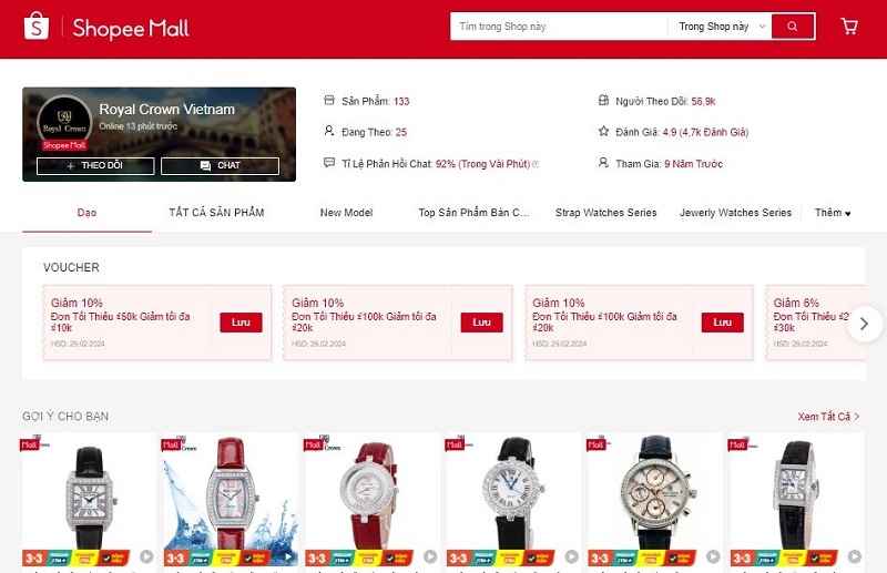 Royal Crown là một địa chỉ đáng tin cậy khác cho những người yêu thích đồng hồ trên Shopee. Với sự cam kết về chất lượng và uy tín, Royal Crown mang đến cho khách hàng những sản phẩm đồng hồ cao cấp và đẳng cấp từ các thương hiệu danh tiếng. Tại đây, bạn có thể tìm thấy những mẫu đồng hồ sang trọng và độc đáo, đáp ứng nhu cầu của mọi phong cách và sở thích.