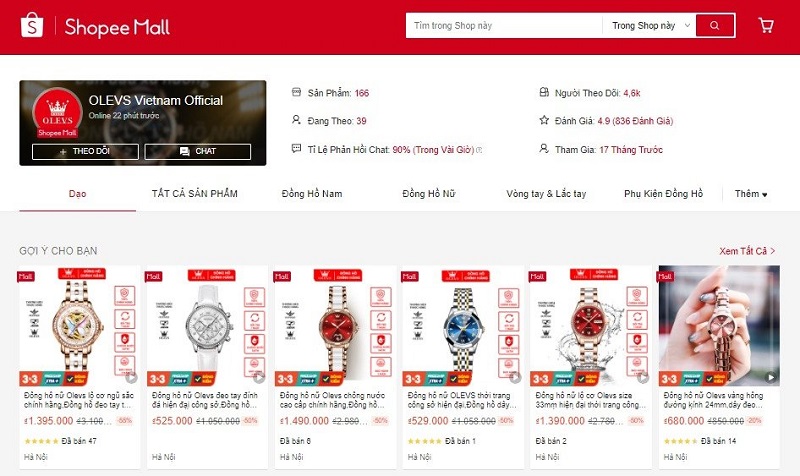 OLEVS là một trong những cửa hàng đồng hồ uy tín trên Shopee, nổi tiếng với các sản phẩm chất lượng và kiểu dáng đa dạng. Với sự cam kết về chất lượng và uy tín, OLEVS mang đến cho khách hàng những mẫu đồng hồ thời trang và sang trọng từ các thương hiệu nổi tiếng với mức giá phải chăng và dịch vụ chăm sóc khách hàng tốt.