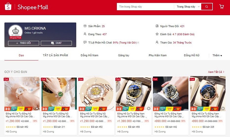 MG.ORKINA là một địa chỉ đáng tin cậy cho những người yêu thích đồng hồ trên Shopee. Với sự cam kết về chất lượng và uy tín, MG.ORKINA cung cấp những mẫu đồng hồ cao cấp và đẳng cấp từ các thương hiệu danh tiếng. Tại đây, bạn có thể tìm thấy những sản phẩm đồng hồ đa dạng và phù hợp với mọi phong cách và nhu cầu sử dụng.
