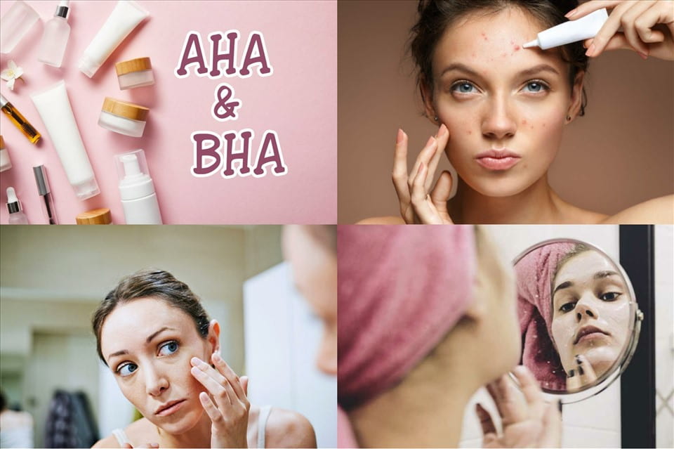 - AHA/BHA: Đây là các chất phổ biến trong việc giúp làm bong các lớp tế bào chết trên da, kích thích tế bào mới phát triển, đồng thời loại bỏ các bụi bẩn, dầu thừa ngay bên dưới lỗ chân lông.
