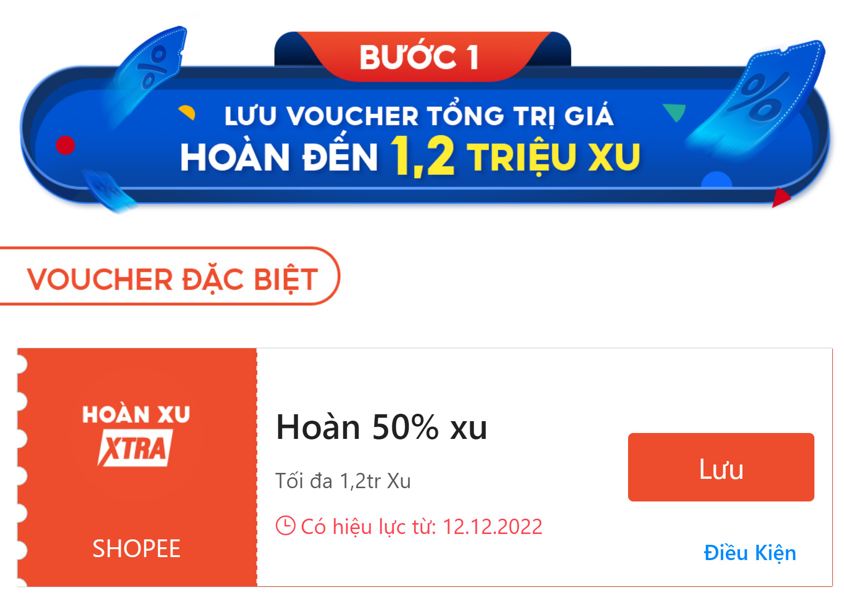 Bật mí tin hot cho bạn là nếu muốn nhận được voucher hoàn xu lên đến 1.2 triệu bạn có thể tham gia thu thập voucher mỗi ngày ngay từ hôm nay. Thời gian thu thập voucher kéo dài từ 26.11 đến hết 11.12 và sử dụng để mua hàng trong ngày 12.12.