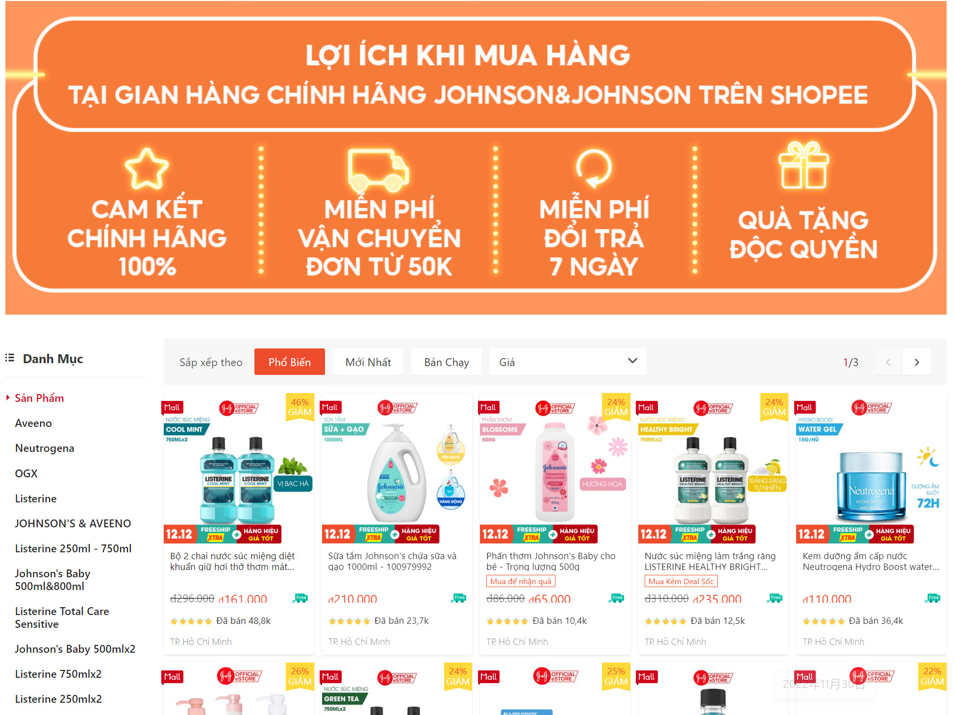 Johnson & Johnson là một gian hàng chuyên phân phối các mặt hàng mỹ phẩm chính hãng các loại. Nếu bạn đang băn khoăn chưa biết mua mỹ phẩm nhãn nào thì có thể ghé đây. Với ưu đãi khủng ngày 12.12, bạn sẽ được mua sắm đủ loại mỹ phẩm với giá tốt mà không phải vất vả tìm từng gian hàng nữa nhé.